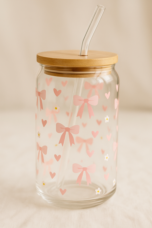 Bow Love Glass Tumbler - Round